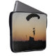 Skydiver parachute drop at sunset offers a great silhouette just before landing. Great 10, 13 or 15 inch laptop computer sleeve for aviation enthusiasts, skydivers, parachutists, and those interested in flying & sky diving.