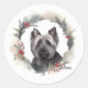 Skye Terrier Christmas Wreath Festive Pup Classic Round Sticker