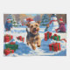 A spirited Skye Terrier runs happily through the snowy winter scene, wearing a festive red Christmas hat. This charming design highlights the breed’s long flowing coat, elegant outline, and devoted personality while capturing the warmth and joy of the holiday season. A delightful winter moment full of festive cheer.