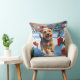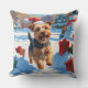 Skye Terrier Running in Snow with Christmas Hat Throw Pillow