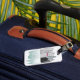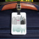 For your city breaks or travels, luggage label representing a skyline schematized and its reflection.