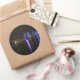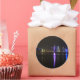 Un autocollant photo rond des gratte-ciel illuminés dans la ligne d'horizon du centre commercial de Doha, la capitale du Qatar, un pays du Golfe Persique, la nuit.
