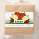 Illustration graphique de tomates, oignons, poivrons chauds et cilantro sur un étiquette en conserve. Le étiquette a un modèle texte pour votre personnalisation. ©2013charmainepaulson
