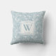 Slate Blue and White Floral Personalized Monogram Throw Pillow