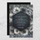 A sophisticated design features a rich tapestry of slate blue florals, evoking a sense of deep, romantic elegance. The monochromatic palette showcases blooms with delicate petals and lush foliage, creating a moody yet refined aesthetic for your special day.