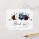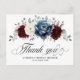 Slate, Burgundy, White ivory themed floral bridal shower thank you postcard featuring elegant bouquet of burgundy, slate, dusty blue, ivory roses and peony flowers and dusty green eucalyptus leaves. Please contact me for any help in customization or if you need any other product