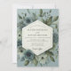 Experience a serene and romantic atmosphere with this elegant botanical design. A sophisticated palette of dusty slate blue, soft sage, and deep teal creates a moody yet ethereal feel. Lush watercolor anemones and delicate cream blossoms are artfully arranged among sprays of verdant eucalyptus leaves.