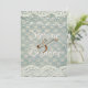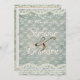A wedding invitation featuring a beautiful slate blue lace design background with the illusion of twinkly lights.