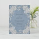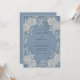 This design features a serene palette of slate blue and frosty silver. Delicate white roses and wispy leaves create a sophisticated botanical border. The mood is ethereal and elegant, perfect for a cold weather or formal evening event. The watercolor-style foliage adds a touch of artistic grace.