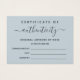 Chic minimalist certificate of authenticity in slate blue and dark bluish grey to which you can add your name or business name.