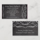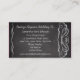 Slate chalkboard-look business card from the matching set features dark charcoal grey background with slate blackboard effect, and white chalk handwritten drawing look writing in the foreground. Decorative swirl motif adds a touch of casual elegance. All Designs Copyright © www.CustomInvitesOnline.com
