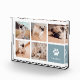 Show off your furry bestie with this cute, modern photo collage block featuring 5 favorite square photos of your dog arranged in a grid layout. The lower right square features a paw print illustration and your dog's name in white vintage typewriter lettering on a smoky blue-green background.