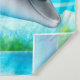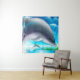 Dolphin mom with her baby diving together over breaking waves. Jumping in clear blue splashing ocean water. Great for indoor and outdoor. Home decor wall art for your living room decoration.
