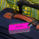 Slate Grey and Neon Fuchsia Elegant Stripes Personalized Luggage Tag
