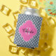 Slate Grey White Dots Hot Pink Quat Name Initial Can Cooler