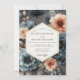 Embrace a mood of lyrical romance with this stunning artistic floral composition. Beautiful anemones in deep slate blue and delicate blossoms in soft peach bloom against a dramatic charcoal background. The painterly watercolor effect adds a layer of sophisticated artistry. This design is perfect for an elegant, moody, and romantic union.