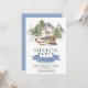 This chic "sledding party" birthday invitation features a classic wooden sled in front of snowy mountains in watercolor. The reverse side features a blue background with white snow patterns. Personalize for your needs. You can find more matching products at my store.