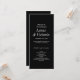The Sleek Black and White Minimalist Wedding Program features a bold black background with elegant white and grey text. Its modern, sophisticated design is effortlessly stylish and easy to customize for your special day.