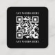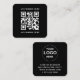 This modern, minimalist black-and-white square business card design showcases your custom logo and QR code on the back. Personalize the text with your business details, such as name, address, phone number, or website. The black background and white text are fully customizable to suit your brand
