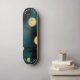 This skateboard features an elegant minimalist design with rich teal and gold geometric elements. The abstract layout creates a modern and sophisticated aesthetic, perfect for skaters who seek a bold yet refined style. A great choice for urban and artistic skateboarding enthusiasts.