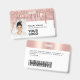 Easily personalize this Custom TRendy Sleek Glam Employee Name Badge with Photo, Scan Bar Code and business logo, with metal clip included. A trendy girly design left-aligned in cute shimmer rose gold glossy faux foil and luxury glitter drips fully customizable in front and back sizes, sans-serif basic and modern fonts and a professional and clear look. Avaiable with or without lanyard, metal clip or with retractable. No minimum order.
