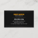 Bold orange accents for the name, tagline, and contact information, creating a striking contrast against the black background.