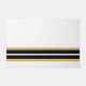 This sporty design features black bottom edge double horizontal racing stripes and adjoining floating golden brown pinstripes. The background is white.