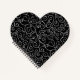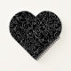 Sleek heart-shaped notebook features painted scrolling white curves which meet and diverge in this all-over repeat design on a black background. The stylish painting is free flowing and decorative.