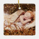 On one side of this Christmas ornament, a sleeping angel is shown while, on the other side, a Christmas tree is shown
