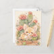 Send a cozy desert hug with this adorable fennec fox postcard. Featuring a sleepy apricot fox tucked into a charming terra cotta planter, this scene is overflowing with blooming green cactus and delicate white wildflower buds. The soft watercolor textures and warm, sun-drenched palette create a peaceful, whimsical vibe that is perfect for a sweet note to a friend or fellow plant lover who appreciates a touch of desert magic.