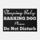Sleeping Baby - Barking Dog - Please Do Not Disturb in distressed chalk style lettering on a black background. © DoggyStyleDesignStudio/PetInksDesignStudio