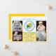 © 2012 Socialite Designs. Whimsical baby boy birth announcement with a sleeping bee in a flower surrounded with a blue lace circle design. A subtle honeycomb pattern on the front and vibrant yellow on the back. A beautiful way to announce the birth of a newborn baby boy to your family and friends. Also makes a wonderful keepsake. Just change out the template photos and text with your own.