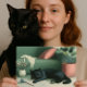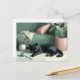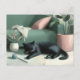 This charming postcard depicts a serene black cat dozing peacefully beside its toy, seemingly lost in captivating catnip dreams. It is ideally suited for both snail mail enthusiasts and Postcrossing participants, showcasing a captivating digital AI feline painting by Susang6. Offered as a postcard or transferable to various products, the choice is yours. The image displayed in the mockup has been enlarged to highlight the intricate details of the postcard.