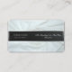 The front side of this card features a background image of a crumpled white bedsheet, adding a touch of character and individuality. In the centre, there is a vertical black-silver stripe serving as a sleek accent for the text. The back side of the card displays a blurred image, creating an intriguing effect. In the centre, there is a black insert for contact information.