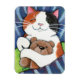 Cute whimsical cat illustrations by Lisa Marie Robinson. A sleepy calico cat hugs a teddy bear in this cute kitty flexible magnet. Artwork © Lisa Marie Robinson. All Rights Reserved.