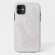 Close up of our gorgeous Sleeping Cat Lace Doily in our subtlest colour, oat, on your phone case.
