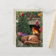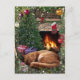 Sleeping Cat next to the Fireplace on Christmas Holiday Postcard
