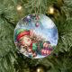 Sleeping Christmas Elf with Calico Kitten Ceramic Ornament