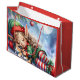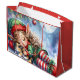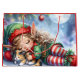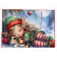 Sleeping Christmas Elf with Calico Kitten Large Gift Bag