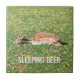 Sleeping Deer in hibernation in autumn on meadow Tile