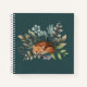 Sleeping Fox Flowers Leaves Dark Green Background Notebook