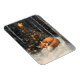 Flexible magnet art featuring an adorable sleeping fox in front of a Christmas tree in the woods.