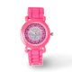An image of a grey sleeping cat with a smile on it's face against a pink, purple and grey patterned oval is a unique design for feline lovers.