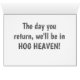 CARD FEATURES A SLEEPING HOG AND THE TEXT, "REST AND GET WELL SOON" AND INSIDE TEXT READS, "THE DAY YOU RETURN, WE'LL BE IN HOG HEAVEN"