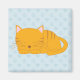 Adorable design features a sweet illustration of an orange tabby kitten taking a nap on a cute pink or blue hearts and paw prints pattern background.