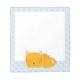 Adorable design features a sweet illustration of an orange tabby kitten taking a nap on a cute pink or blue hearts and paw prints pattern background.