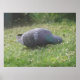This print features a photograph of a wild Pigeon taken in my back garden. The bird was pecking about in the grass looking for seed that had been knocked off a bird feeder. As it put its head down to peck it closed its eye and as a result looks as though it is sleeping.