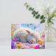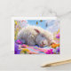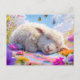 Sleeping sheep on meadow picnic blanket holiday postcard