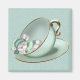 The cutest little mouse dressed in a sweater and a little hat .. asleep in a tea cup on a green patterned background .. mouse products from Ricaso