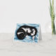 Animal themed note card featuring a reproduction of an original watercolour illustration by Lisa Marie Robinson. A black and white tuxedo cat sleeping on a blue blanket. Copyright © Lisa Marie Robinson. All rights reserved.